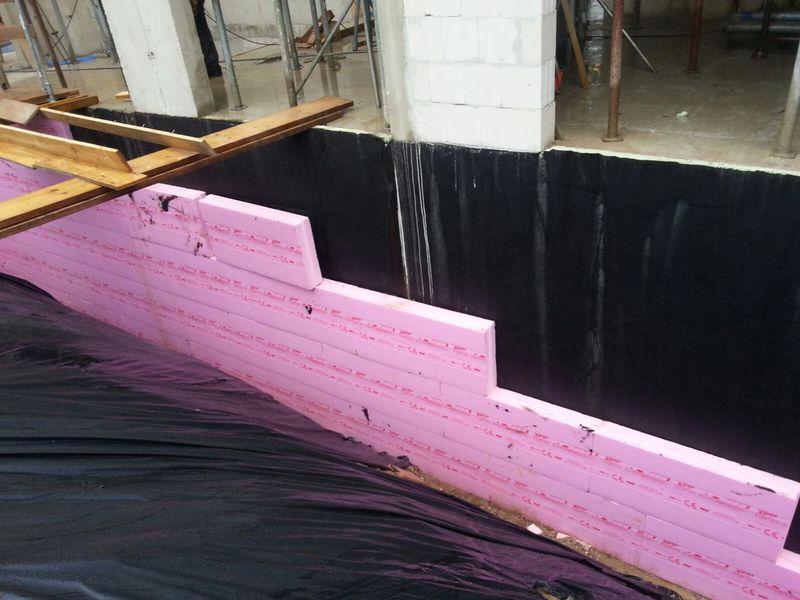 Außenabdichtung mit Mineralischer Bitumendickbeschichtung, Dämmung und Drainagebau